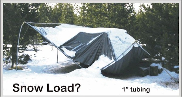This photo was taken after a snow storm. The canopy was a low peak gable 20x20 foot made with 1 inch tubing. None of the fittings were damaged. Removing the tarp prior to the storm would have prevented this damage.